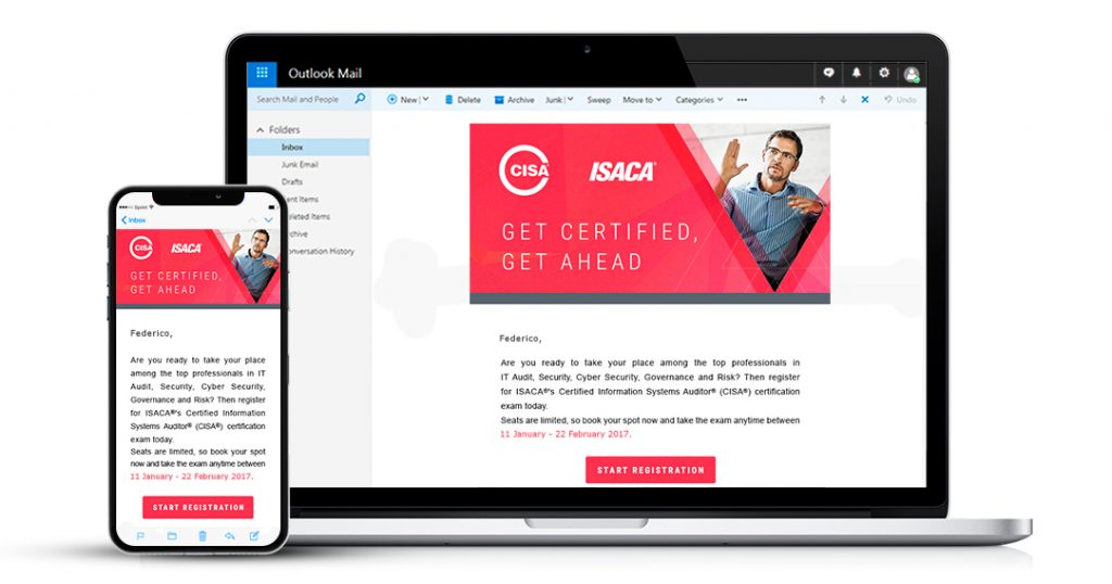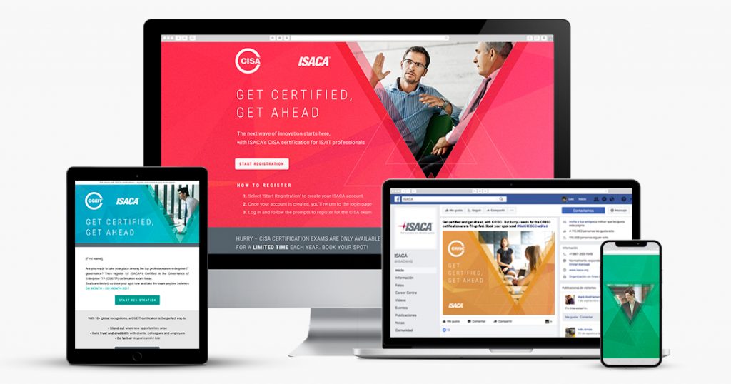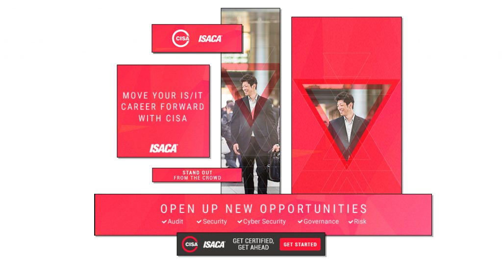 After running several previous campaigns, ISACA wanted to get more creative to drive their KPIs. They presented us with their objectives and asked us to mock up several concepts. Once the winning concept was chosen, we developed a multi-channel campaign that tapped into the flexible reach of standard ads while staying true to the professional tone ISACA needed to maintain.